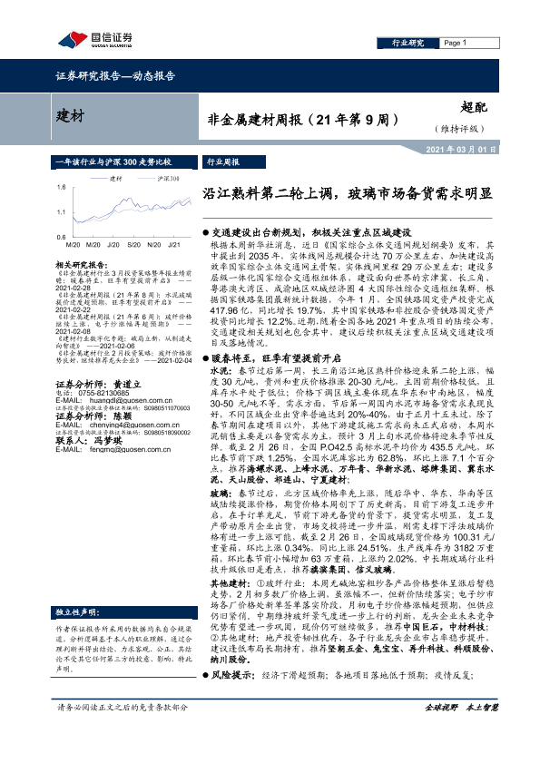 【国信证券】【20210301】非金属建材周报:沿江熟料第二轮上调,玻璃市场备货需求明显-15页