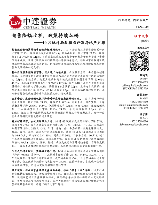 【中达证券】【20221115】房地产行业10月统计局数据点评及房地产月报:销售降幅收窄,政策持续加码-26页