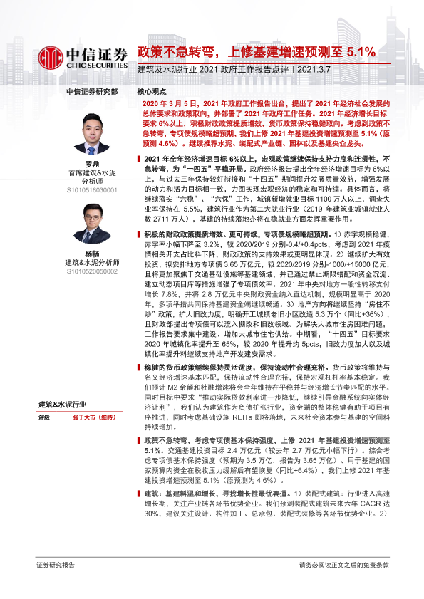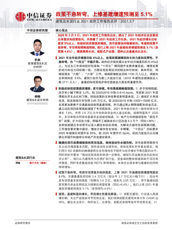 【中信证券】【20210307】建筑及水泥行业2021政府工作报告点评-4页