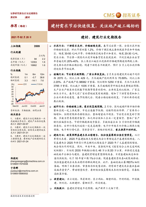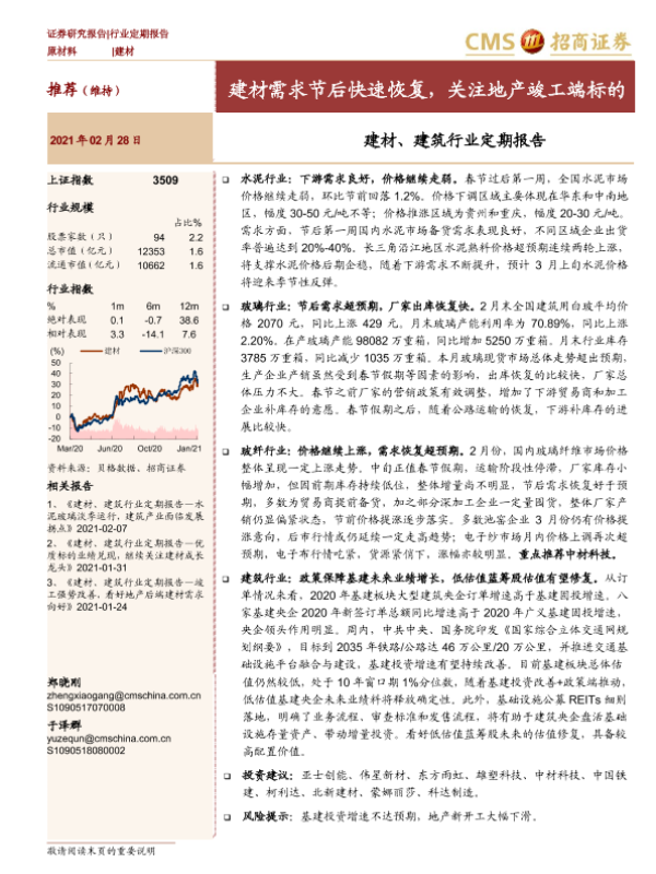 【海通证券】【20210228】建材、建筑行业定期报告:建材需求节后快速恢复,关注地产竣工端标的-34页