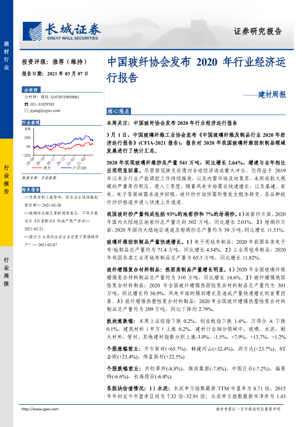 【长城证券】【20210307】中国玻纤协会发布2020年行业经济运行报告-21页
