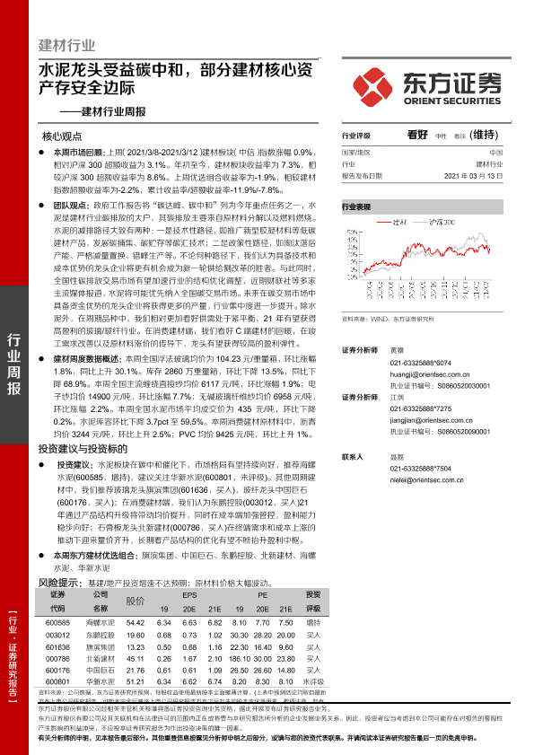 【东方证券】【20210313】建材行业周报:水泥龙头受益碳中和,部分建材核心资产存安全边际-22页