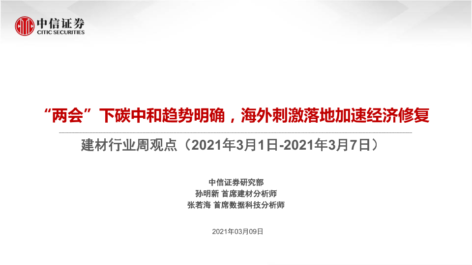 【中信证券】【20210309】两会下碳中和趋势明确,海外刺激落地加速经济修复-53页