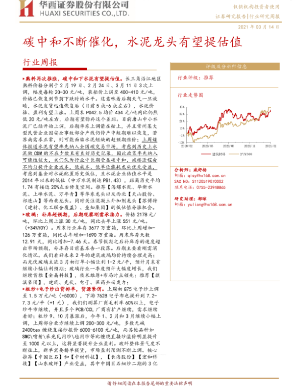 【华西证券】【20210314】建材行业周报:碳中和不断催化,水泥龙头有望提估值-16页