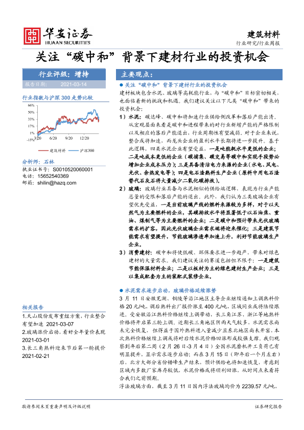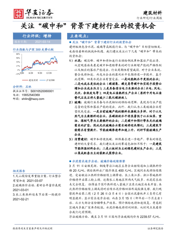 【华安证券】【20210314】建筑材料行业周报:关注“碳中和”背景下建材行业的投资机会-17页