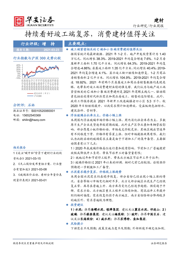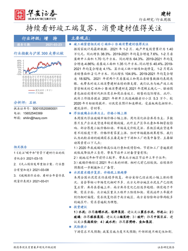 【华安证券】【20210323】持续看好竣工端复苏,消费建材值得关注-16页