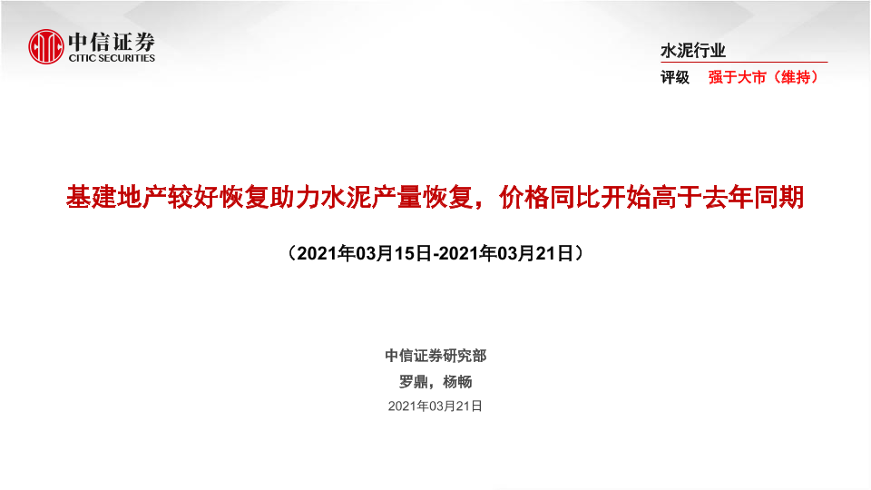 【中信证券】【20210321】基建地产较好恢复助力水泥产量恢复,价格同比开始高于去年同期-39页