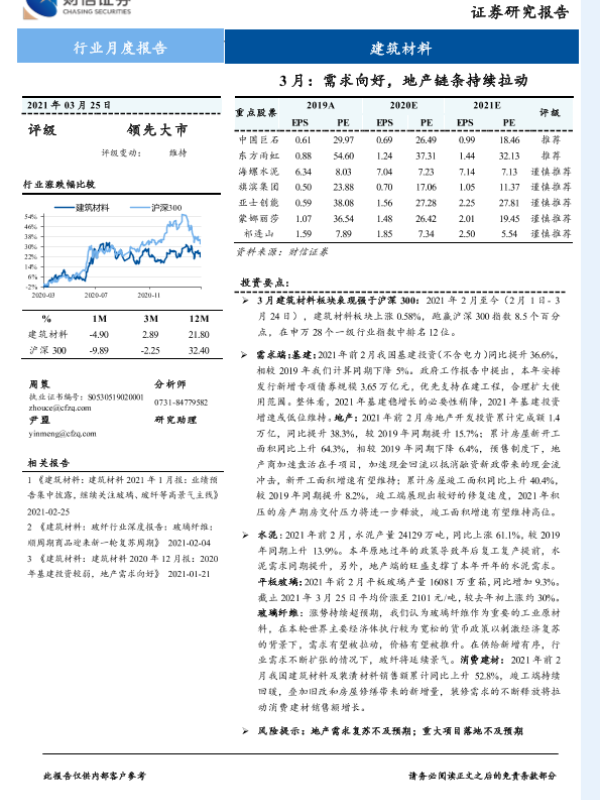 【财信证券】【20210325】建筑材料行业3月:需求向好,地产链条持续拉动-10页