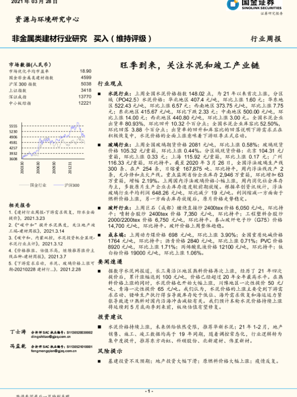 【国金证券】【20210328】非金属类建材行业研究:旺季到来,关注水泥和竣工产业链-8页