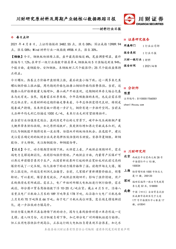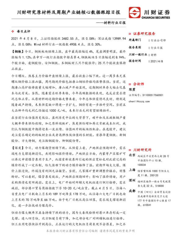 【川财证券】【20210408】材料行业日报:川财研究原材料及周期产业链核心数据跟踪日报-4页