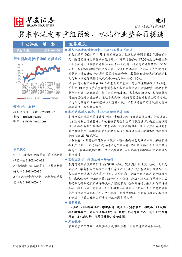 【华安证券】【20210406】冀东水泥发布重组预案,水泥行业整合再提速-17页