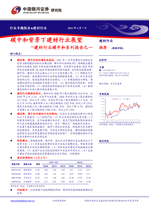 【银河证券】【20210407】碳中和背景下建材行业展望-12页