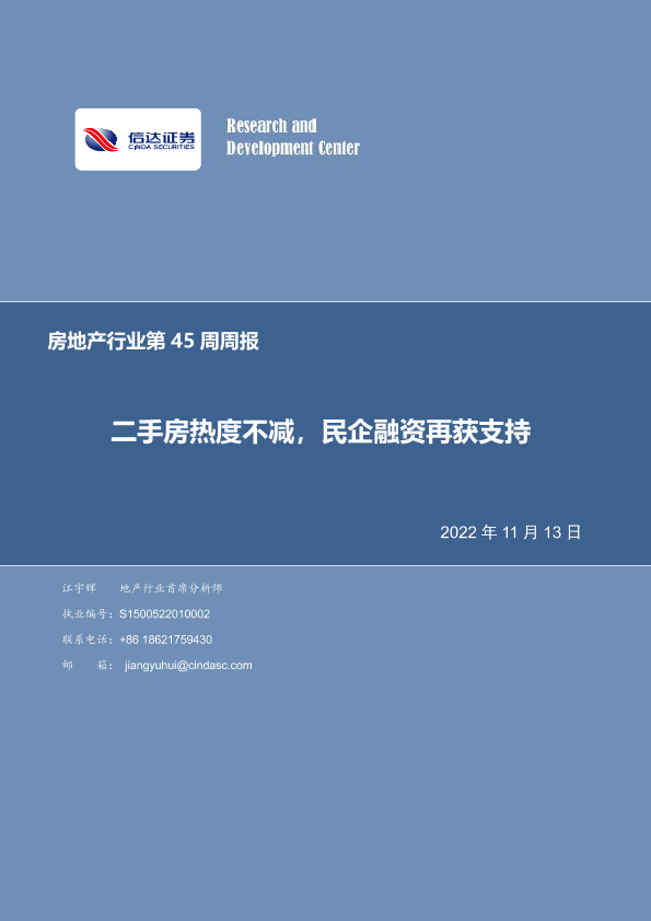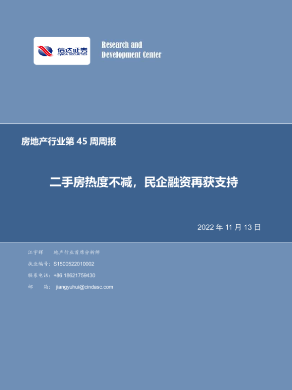 【信达证券】【20221113】房地产行业第45周周报:二手房热度不减,民企融资再获支持-20页