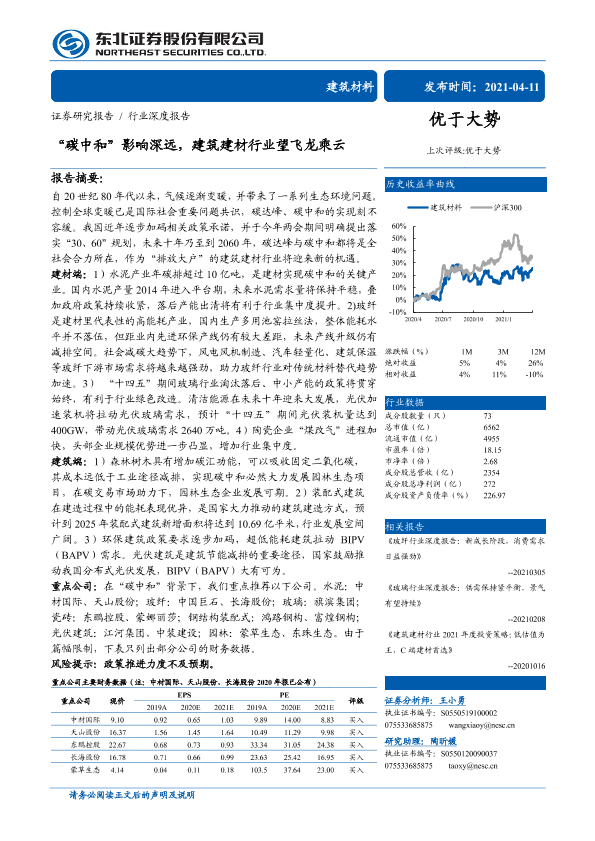 【东北证券】【20210411】建筑材料行业深度报告:“碳中和”影响深远,建筑建材行业望飞龙乘云-63页
