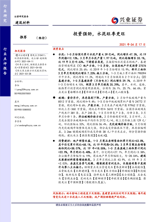 【兴业证券】【20210417】投资强劲,水泥旺季更旺-8页