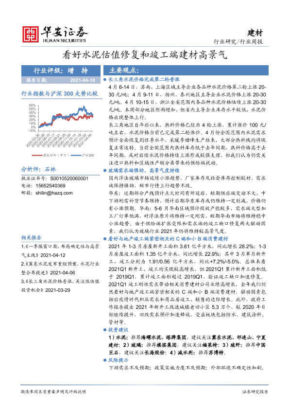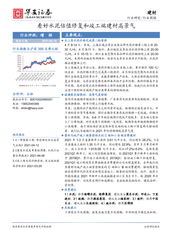【华安证券】【20210418】建材行业周报:看好水泥估值修复和竣工端建材高景气-17页