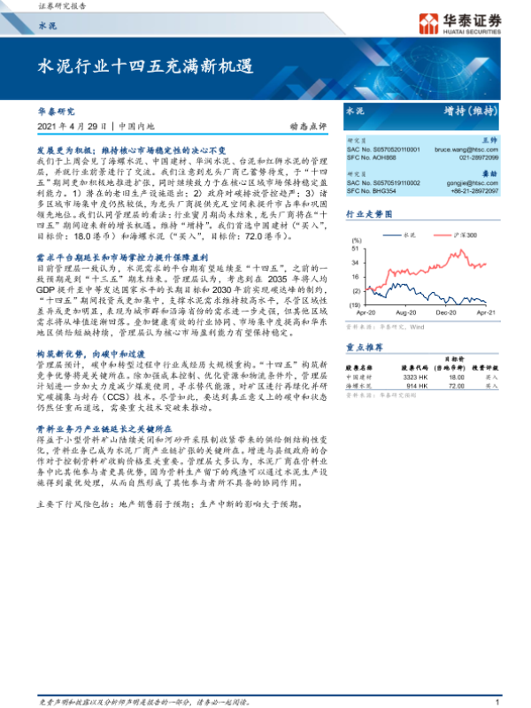 【华泰证券】【20210429】水泥行业十四五充满新机遇-5页