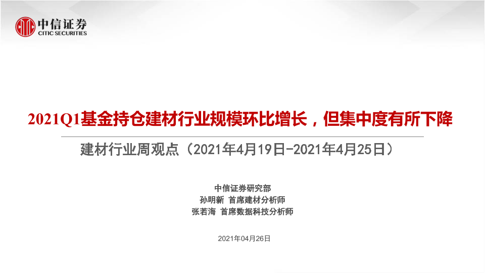 【中信证券】【20210426】2021Q1基金持仓建材行业规模环比增长,但集中度有所下降-53页