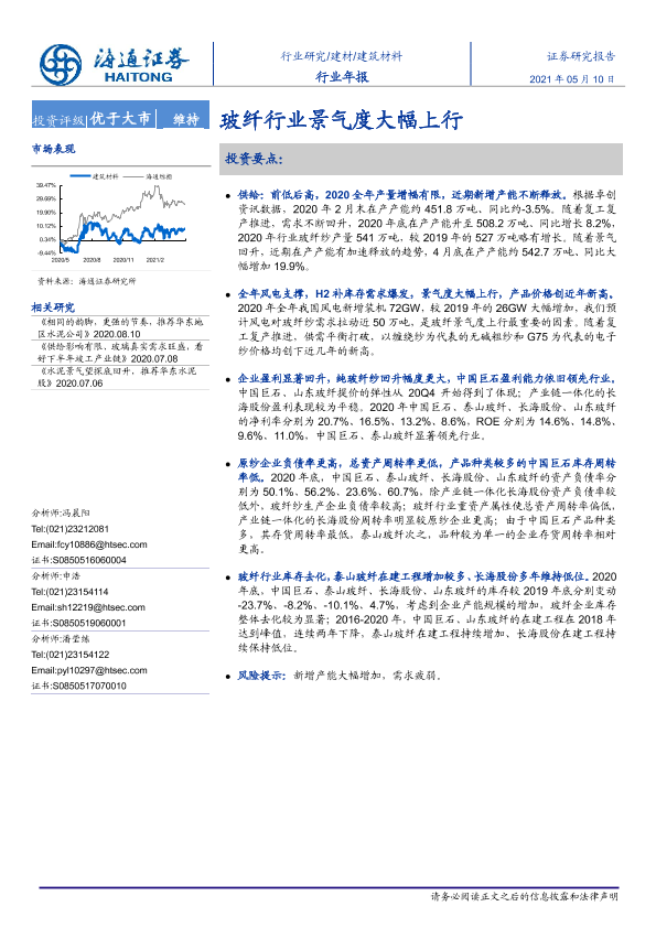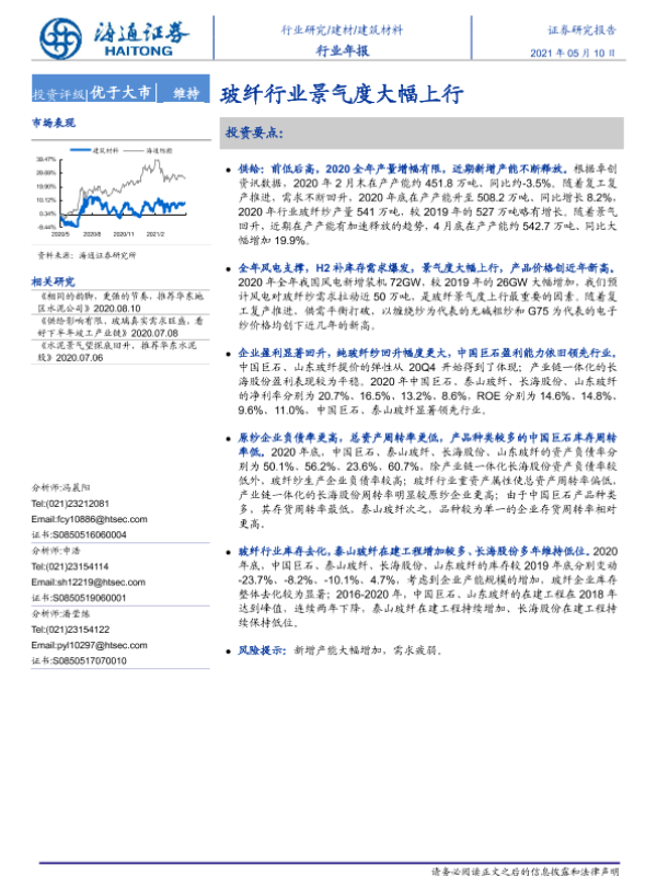 【海通证券】【20210510】建筑材料行业年报:玻纤行业景气度大幅上行-7页