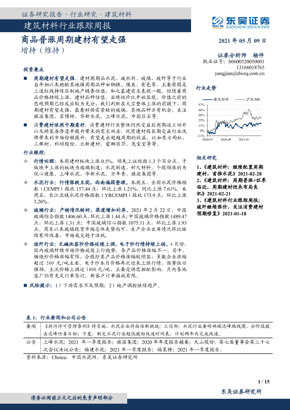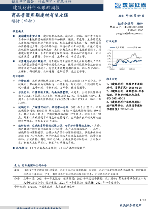 【东吴证券】【20210509】建筑材料行业跟踪周报:商品普涨周期建材有望走强-15页