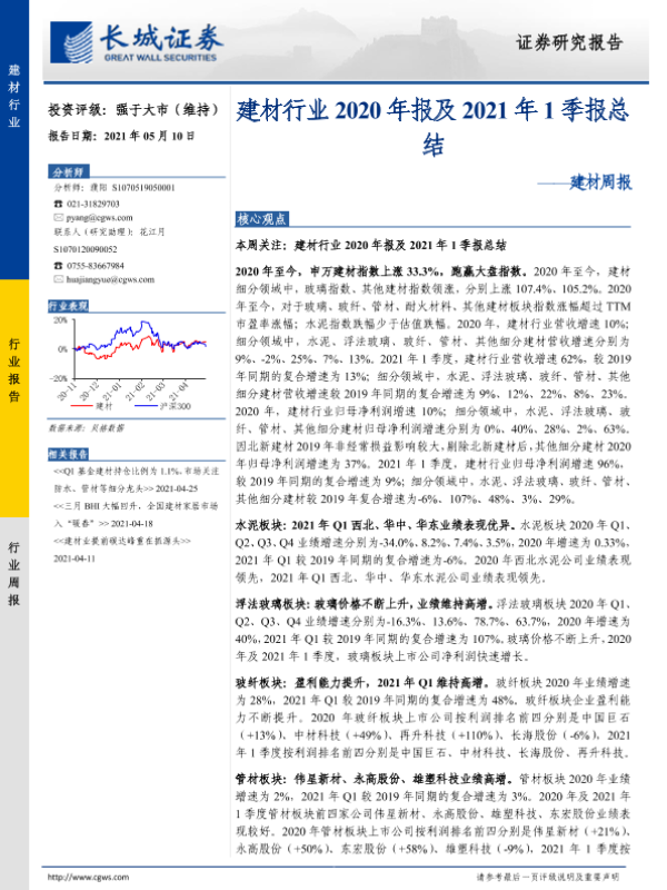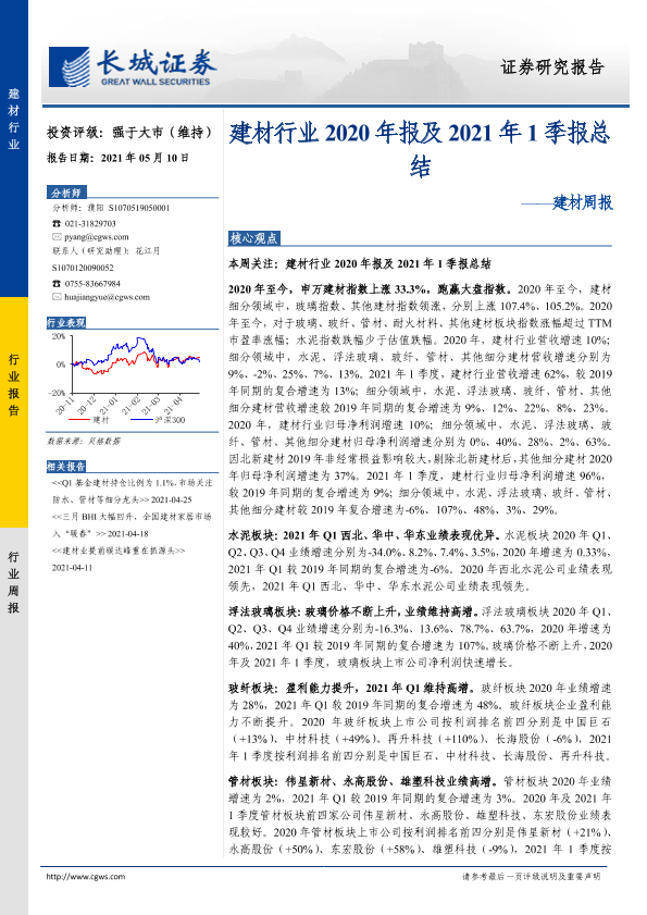 【长城证券】【20210510】建材行业2020年报及2021年1季报总结-34页