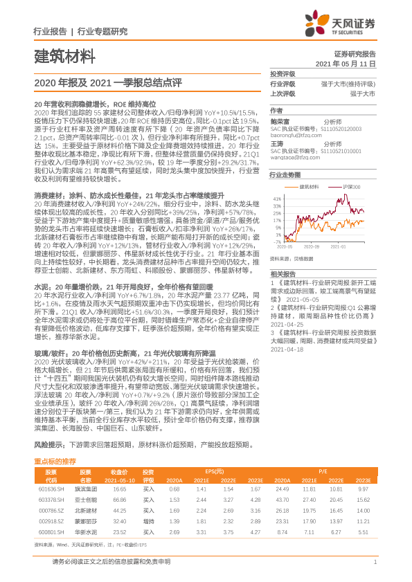 【天风证券】【20210511】建筑材料行业:2020年报及2021一季报总结点评-22页