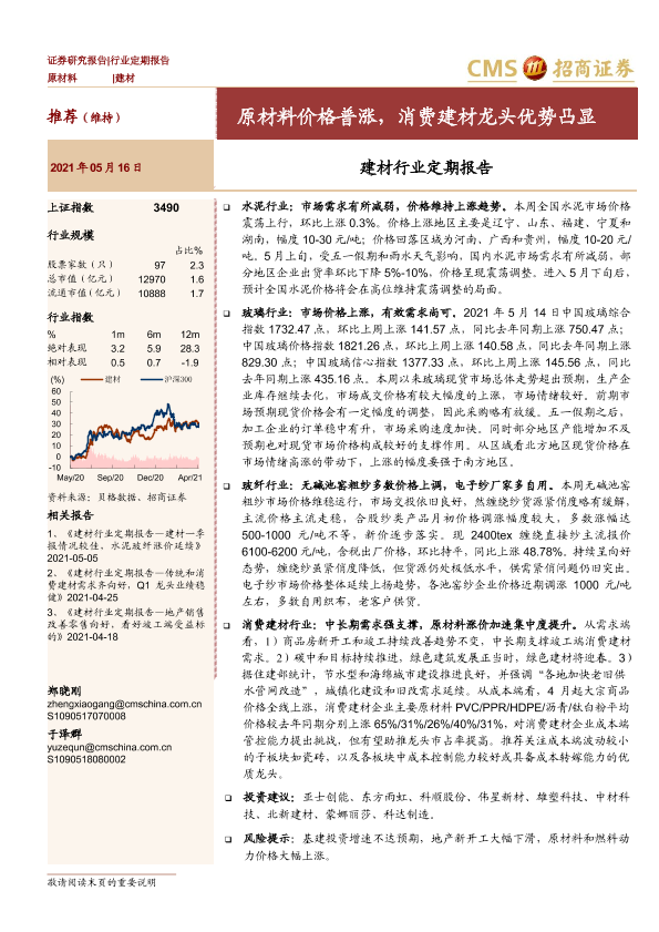 【海通证券】【20210516】建材行业定期报告:原材料价格普涨,消费建材龙头优势凸显-25页
