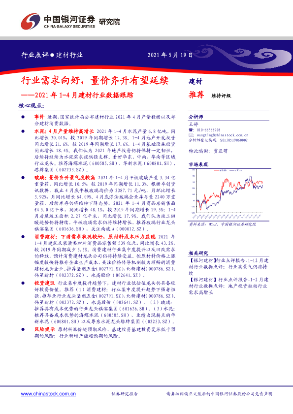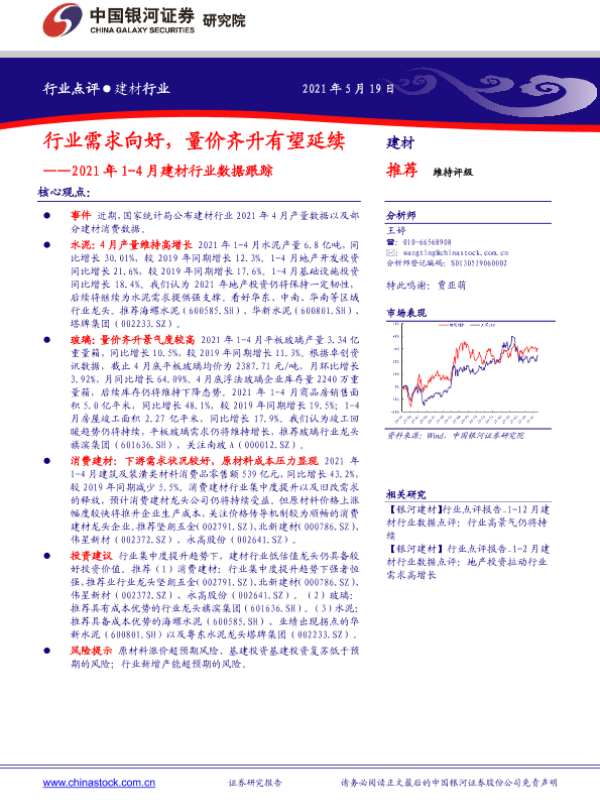 【银河证券】【20210519】2021年1-4月建材行业数据跟踪:行业需求向好,量价齐升有望延续-4页