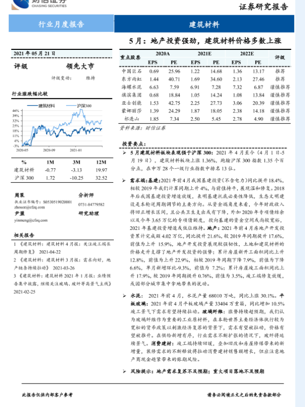 【财信证券】【20210521】5月:地产投资强劲,建筑材料价格多数上涨-11页