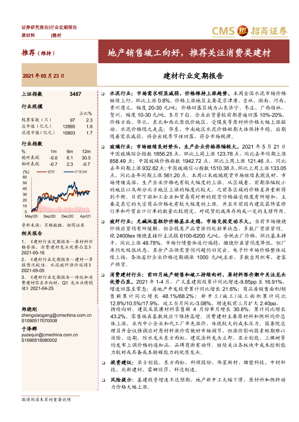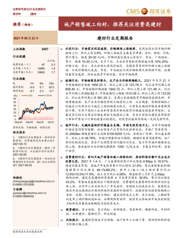 【海通证券】【20210523】建材行业定期报告:地产销售竣工向好,推荐关注消费类建材-23页