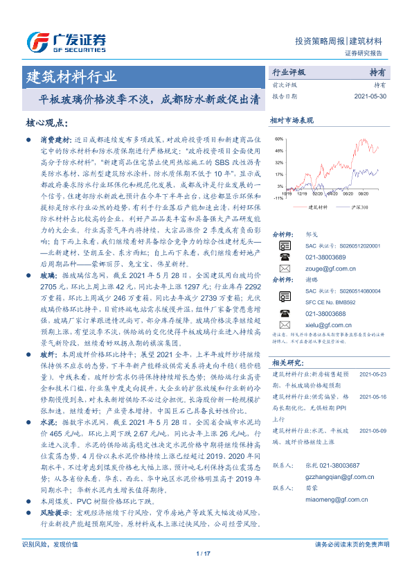 【广发证券】【20210530】建筑材料行业投资策略周报:平板玻璃价格淡季不淡,成都防水新政促出清-17页