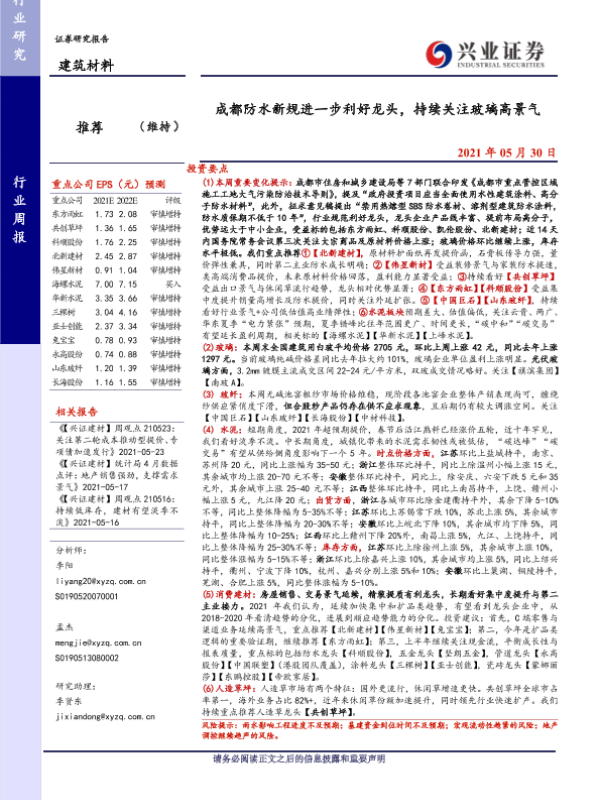 【兴业证券】【20210530】成都防水新规进一步利好龙头,持续关注玻璃高景气-21页