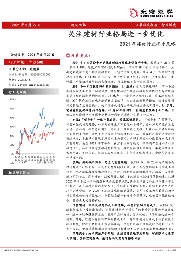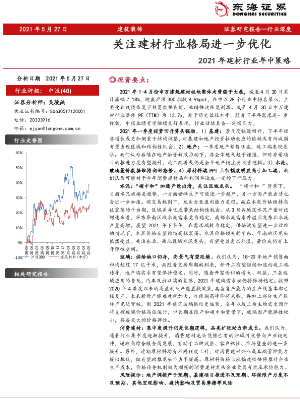 【东海证券】【20210527】2021年建材行业年中策略:关注建材行业格局进一步优化-27页