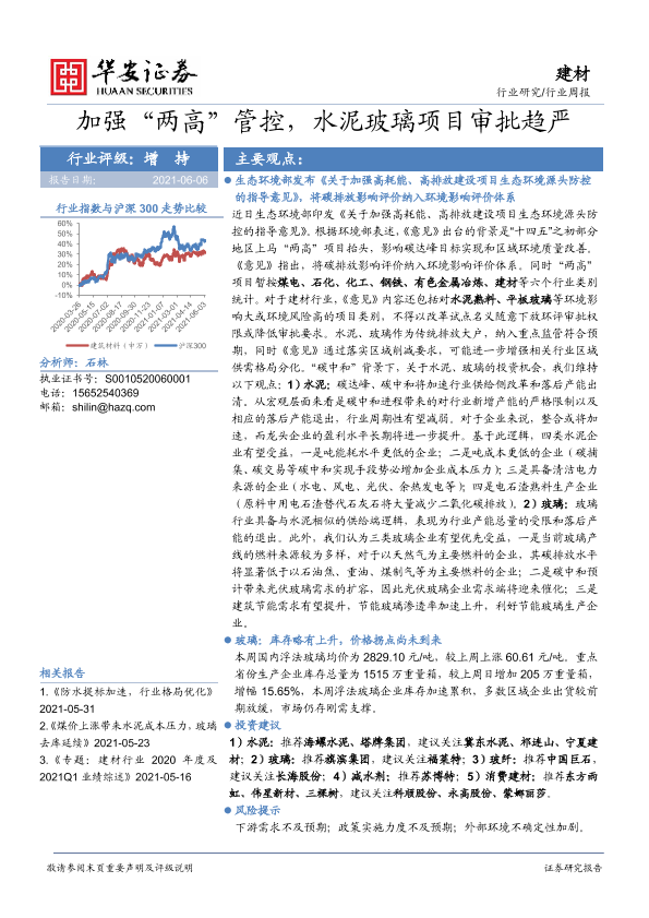 【华安证券】【20210606】加强‘两高’管控,水泥玻璃项目审批趋严-16页