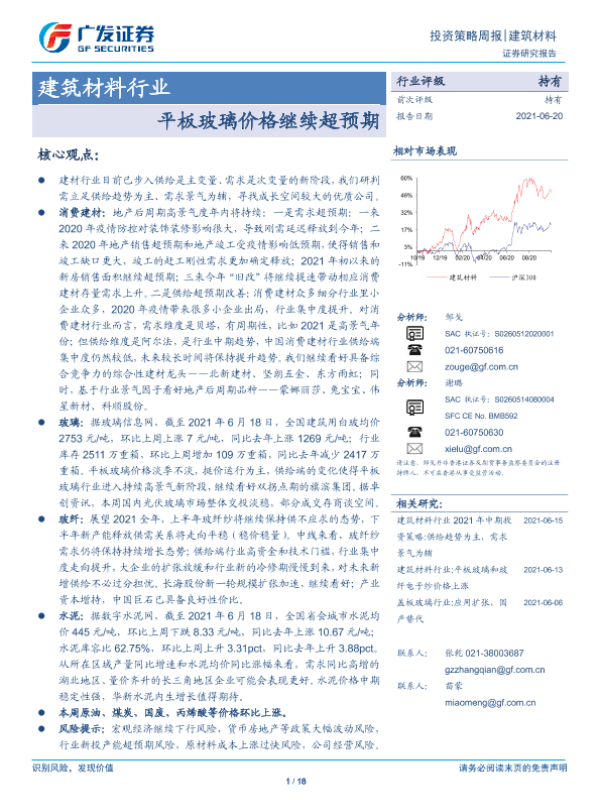 【广发证券】【20210620】建筑材料行业:平板玻璃价格继续超预期-18页