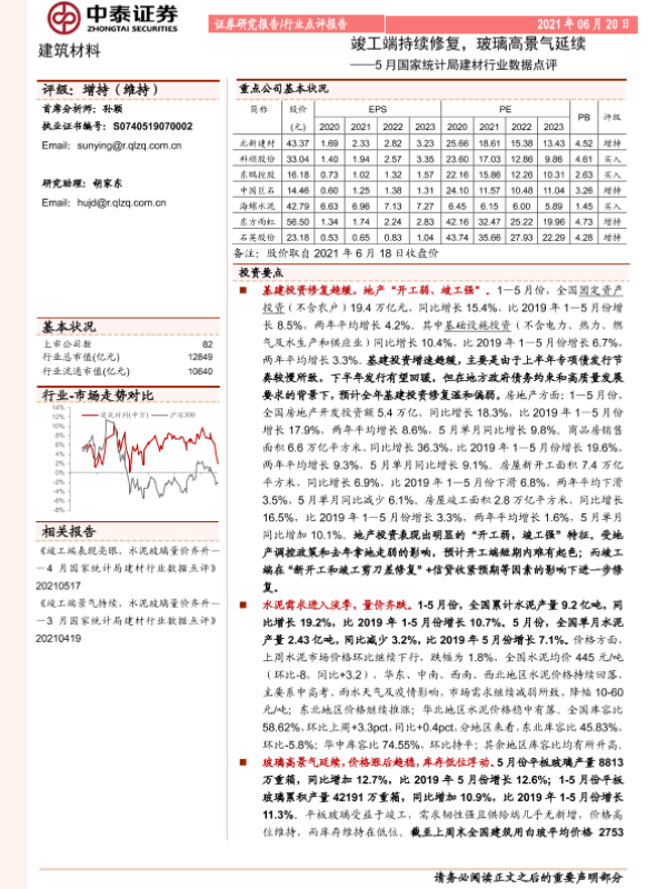 【中泰证券】【20210620】5月国家统计局建材行业数据点评:竣工端持续修复,玻璃高景气延续-7页