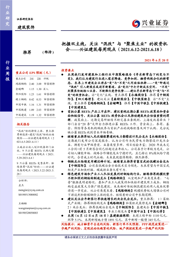 【兴业证券】【20210620】把握双主线,关注“混改”与“聚焦主业”的投资机会-39页