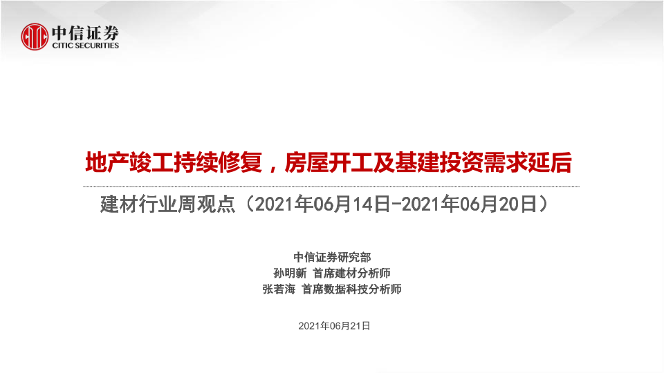 【中信证券】【20210621】建材行业周观点:地产竣工持续修复,房屋开工及基建投资需求延后-51页