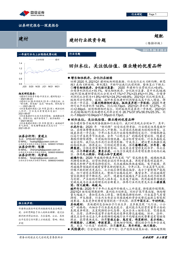 【国信证券】【20210625】建材行业投资专题:回归本位,关注低估值、强业绩的优质品种-43页