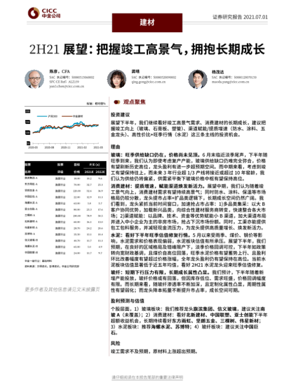 【中金公司】【20210701】建材行业2H21展望:把握竣工高景气,拥抱长期成长-32页