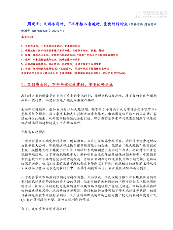 【国泰君安证券】【20210711】又到布局时,下半年核心看建材,重要的转折点-14页