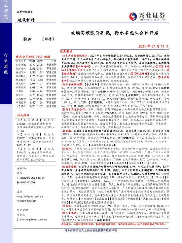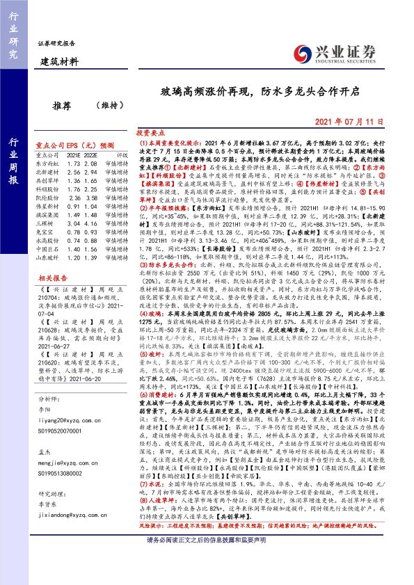 【兴业证券】【20210711】玻璃高频涨价再现,防水多龙头合作开启-21页