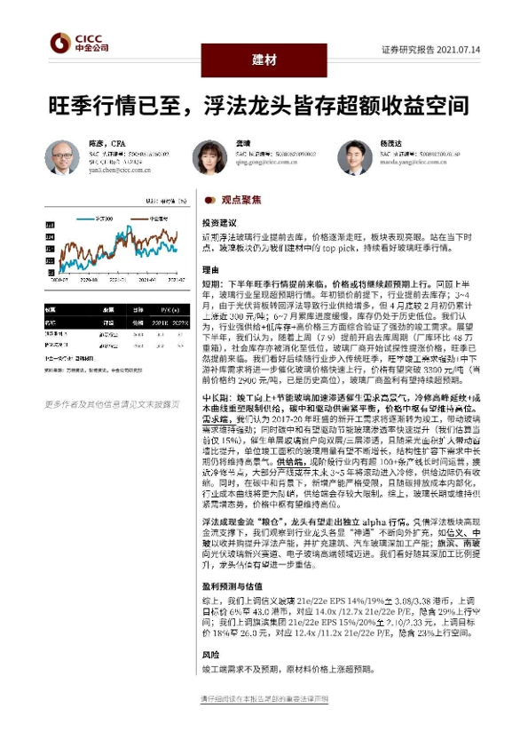 【中金公司】【20210714】建材:旺季行情已至,浮法龙头皆存超额收益空间-7页