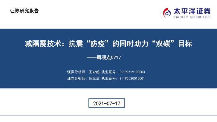 【太平洋证券】【20210717】建材周观点:减隔震技术:抗震“防疫”的同时助力“双碳”目标-35页