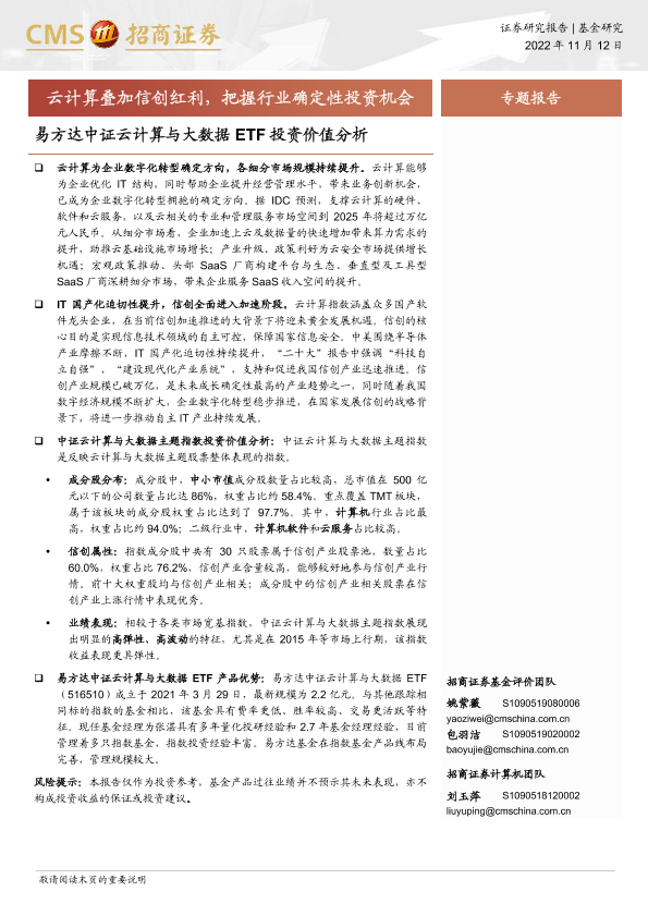 【海通证券】【20221112】易方达中证云计算与大数据ETF投资价值分析:云计算叠加信创红利,把握行业确定性投资机会-20页