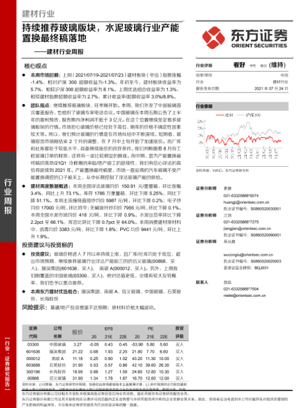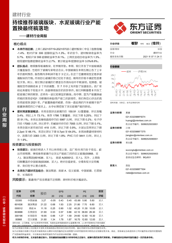 【东方证券】【20210724】建材行业周报:持续推荐玻璃版块,水泥玻璃行业产能置换最终稿落地-22页