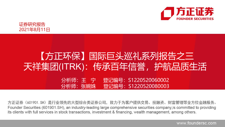 【方正证券】【20210811】环保行业国际巨头巡礼系列报告之三:天祥集团(ITRK),传承百年信誉,护航品质生活-52页