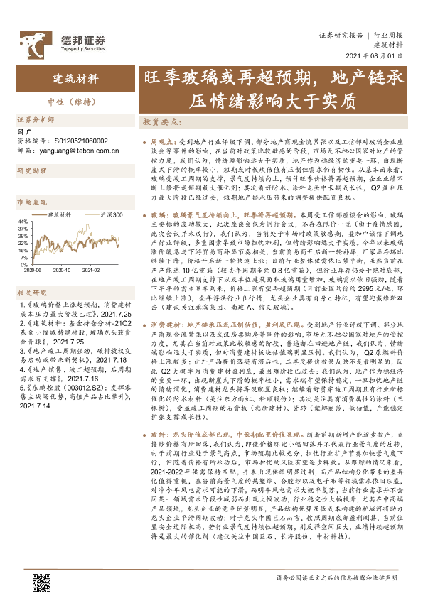【德邦证券】【20210801】建筑材料行业周报:旺季玻璃或再超预期,地产链承压情绪影响大于实质-18页