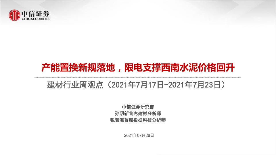 【中信证券】【20210726】产能置换新规落地,限电支撑西南水泥价格回升-52页