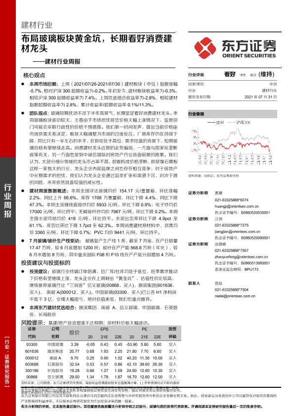【东方证券】【20210731】布局玻璃板块黄金坑,长期看好消费建材龙头-22页